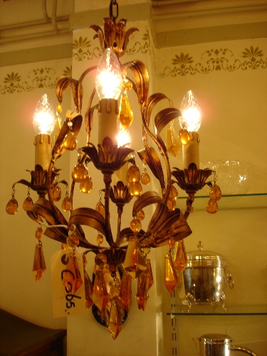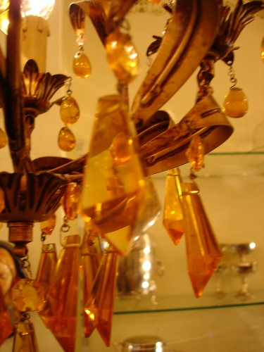 Oud kroonluchtertje met amber kleurige pegels